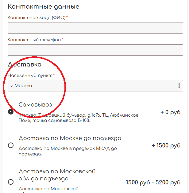 ЕСЛИ НЕТ ПУНКТА САМОВЫВОЗ В СПИСКЕ ОФОРМЕНИЯ ЗАКАЗЫ